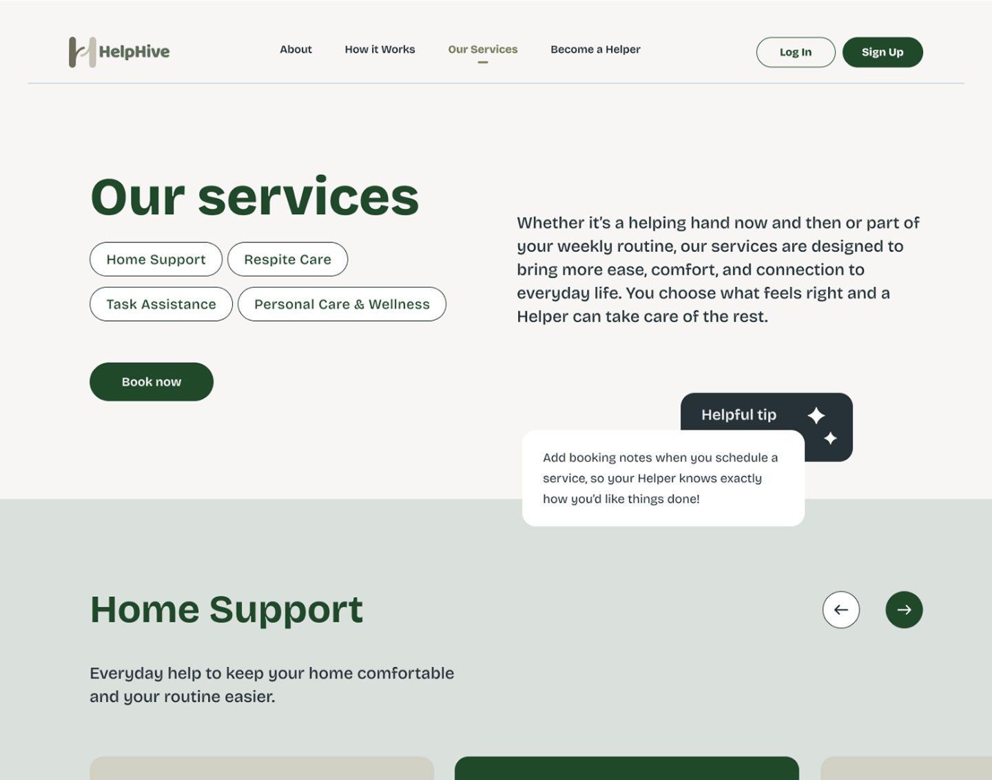 HelpHive is a web-based marketplace designed to help seniors and their families find, book, and manage trusted non-medical support services from local providers.