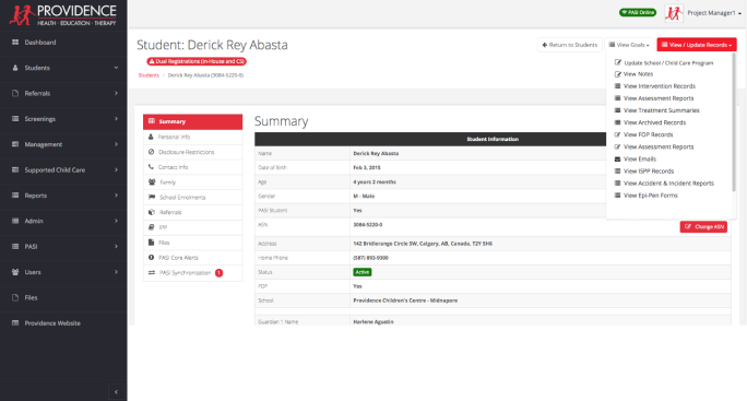 Providence allowed students to build and book courses through their online platform, and one of the key requirements in the province of Alberta is submission of grades and test scores. This can be a very complex manual process, to submit these records student by student, or this can be an automated platform for submission through PASI. The goal of Essential Designs was to build the automated system, to submit these records instantly as students finished their classes.